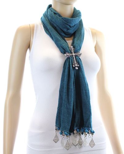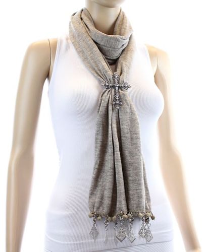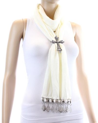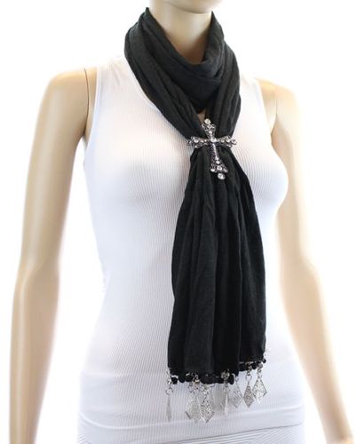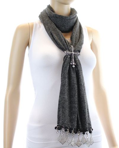 FASHION SCARF with MAGNETIC CROSS PENDANT ORNAMENT